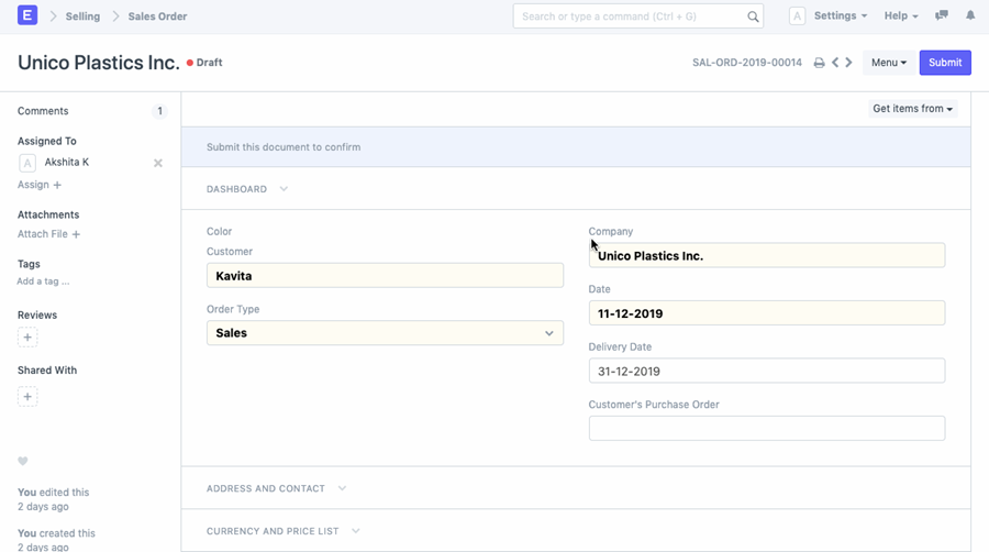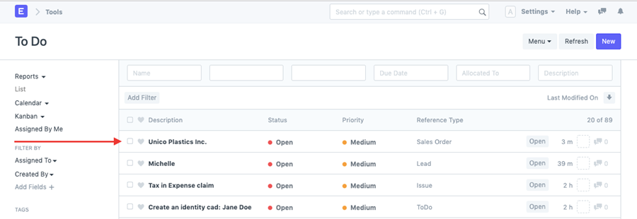 عند إسناد هذا المستند إلى مدير المبيعات، سيتم إضافته إلى قائمة المهام الخاصة بهذا المستخدم.
