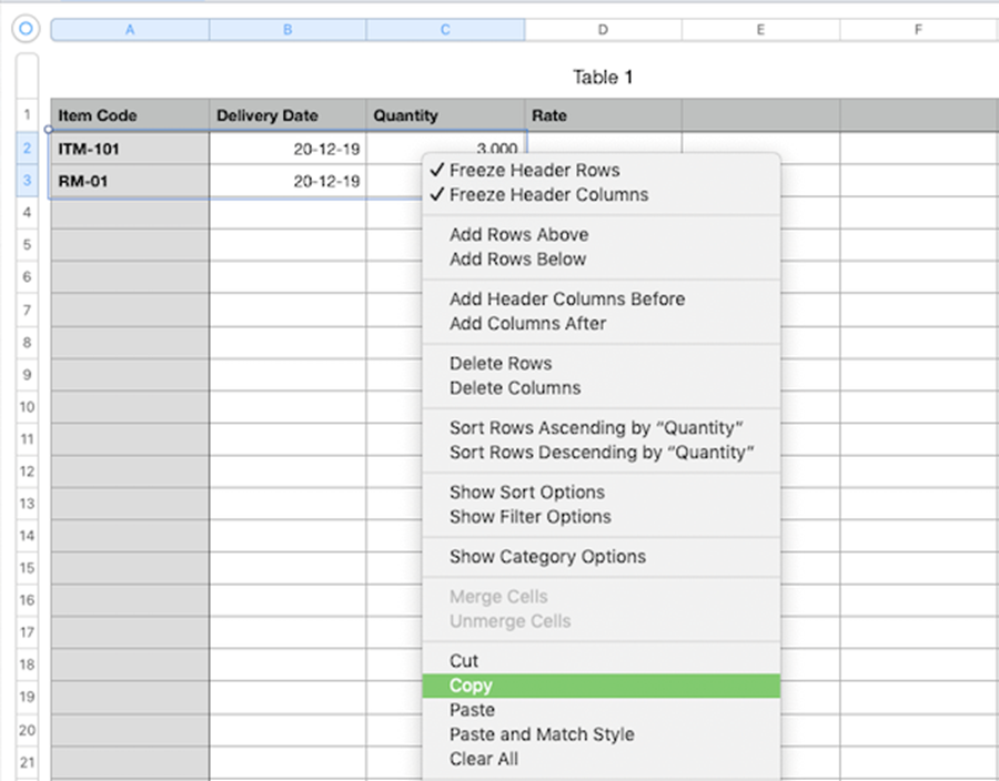 ضع المؤشر في حقل الإدخال المستهدف في الجدول الفرعي، وقم بلصقه. على عكس ميزة استيراد الملف عن طريق التحميل، ستقوم ميزة النسخ واللصق هذه بتنشيط أحداث تغيير الحقل تلقائيًا.