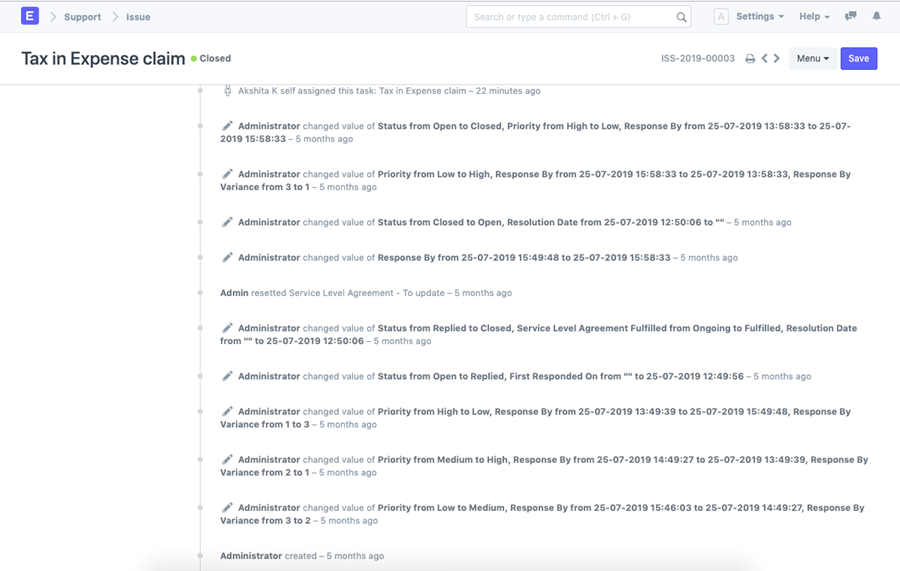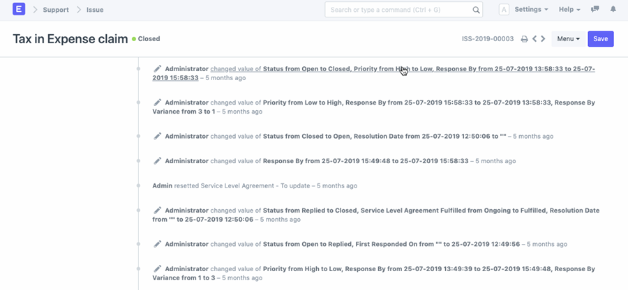 عند النقر على هذه الروابط، ستتم إعادة التوجيه إلى سجل يحتوي على جميع الحقول والتغييرات التي تم إجراؤها فيها.