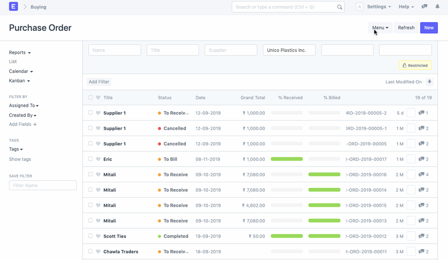 بعد تفعيل تتبع التغييرات في المستند، سيتم تفعيلها لجميع طلبات الشراء التي تم تعديلها بعد التفعيل.