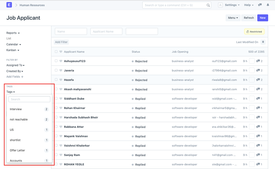 أثناء استعراض قائمة المستندات، يمكنك تصفية المستندات باستخدام التاق. ستتمكن من رؤية عدد المستندات التي تم وضع ناق عليها لكل تصنيف.
