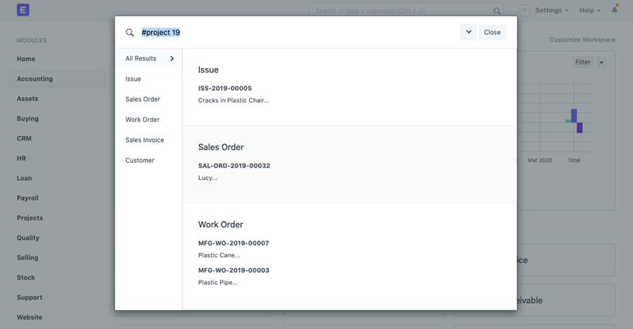 عندما تقوم بوضع تاق على عدد من المستندات باستخدام تاق محددة، يمكنك العثور على جميع المستندات التي تم وضع تاق عليها بالبحث عن "#اسم_العلامة" في شريط البحث الشامل في الأعلى. على سبيل المثال، إذا قمت بوضع تاق على بعض المستندات بتاق "مشروع 19"، فقط اكتب "#مشروع 19" في شريط البحث الشامل بدون علامات التنصيص واختر "#مشروع 19" من النتائج.