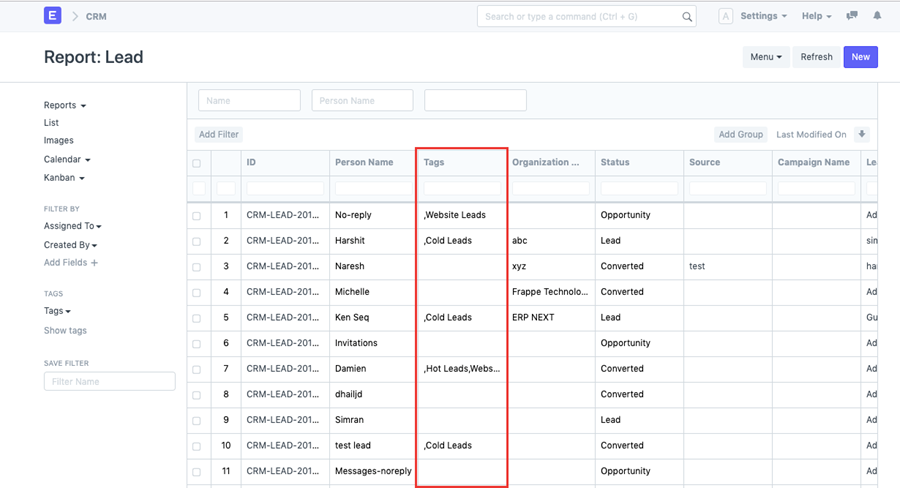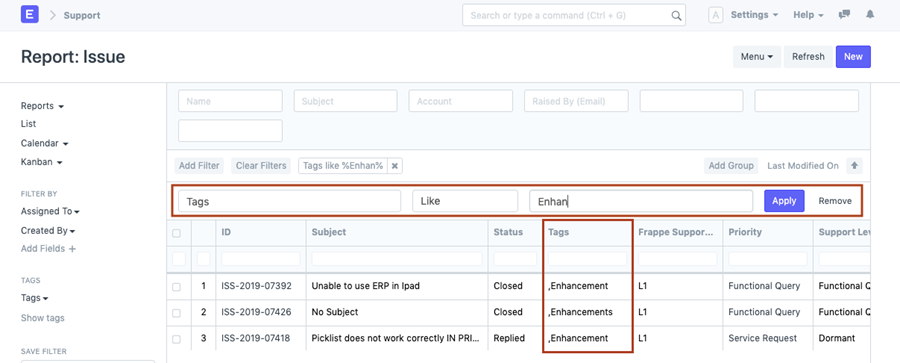 يمكن أيضًا البحث عن التاق كفلتر في التقرير.