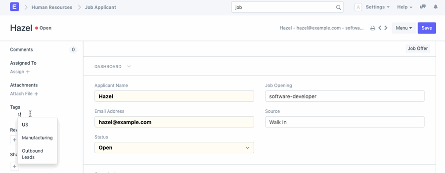 يمكنك إضافة أي تاق إلى شاشة تمامًا مثل المهام المسندة والتعليقات.